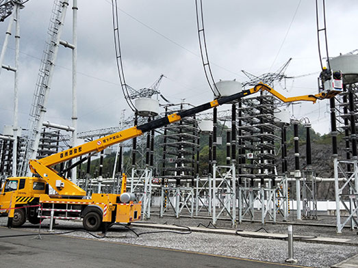 云梯平面旋轉(zhuǎn)的角度大,可達(dá)到240度,直立工作角度可以達(dá)到85度